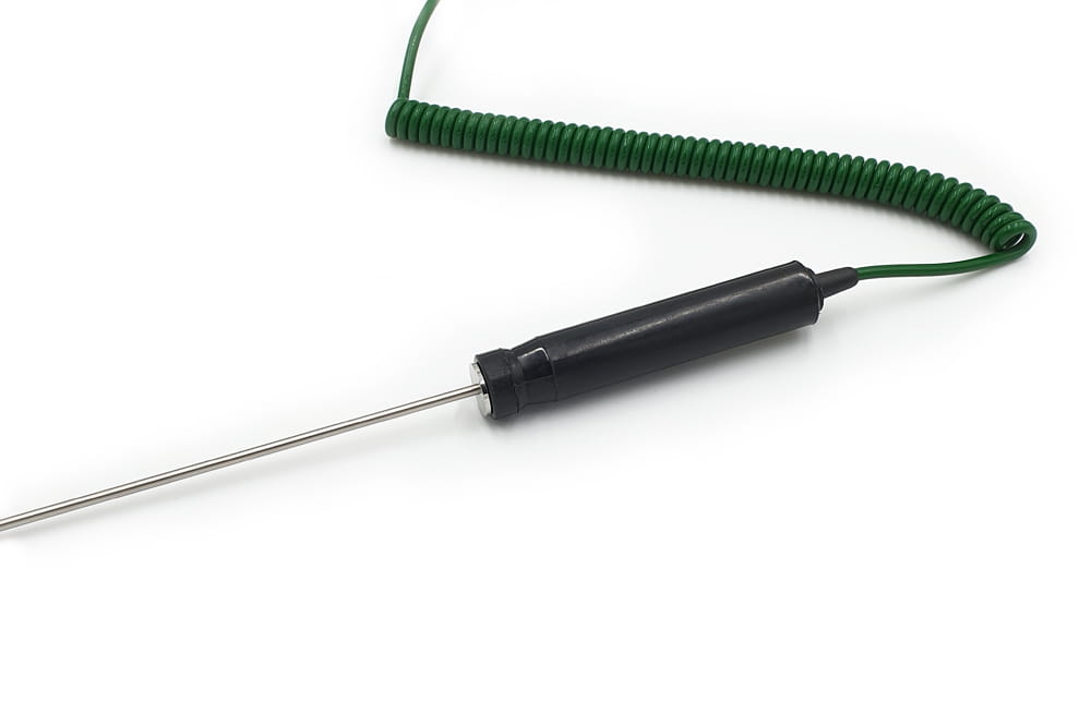Czujniki temperatury termoelektryczny płaszczowy K (NiCr-NiAl) – rączka z TWORZYWA SZTUCZNEGO, przewód spiralny 1,5 m z wtyczką mini (6,0/300)