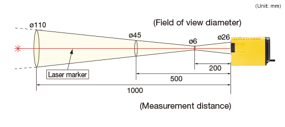 - Wbudowany koncentryczny znacznik laserowy umożliwia widzenie obiektów pomiarowych